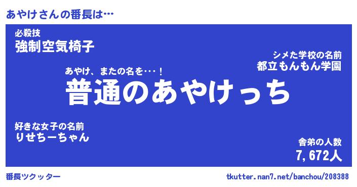 | 意味不明あだ名 | 『ペロリンあやけ』『あやけフォーエバー』 |