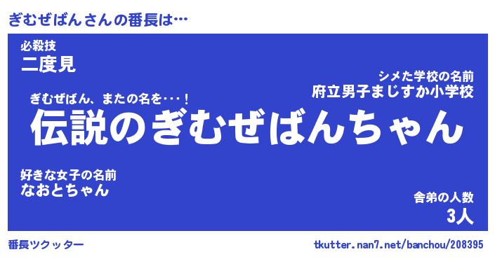 | 伝説のあだ名 | 『伝説のスナイパーぎむぜばん』 |