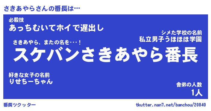| ファンタジー風あだ名 | 『サキフェル』『エターナルサキアヤラー』 |