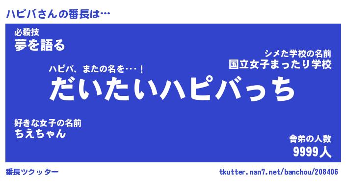 | ヒーロー風カッコイイあだ名 | 『スーパーハピバ』『ウルトラハピバマン』 |
