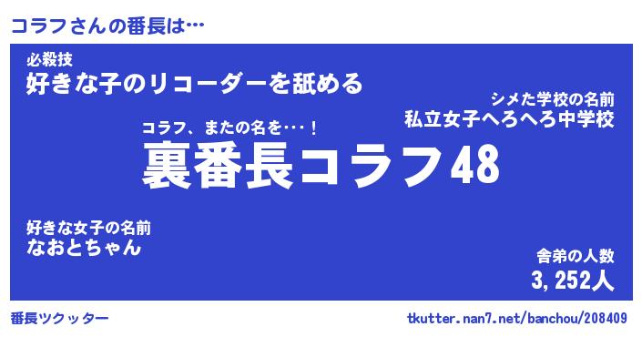 | ヘコむあだ名 | 『コラにー』『豆乳』『コラ太郎』 |