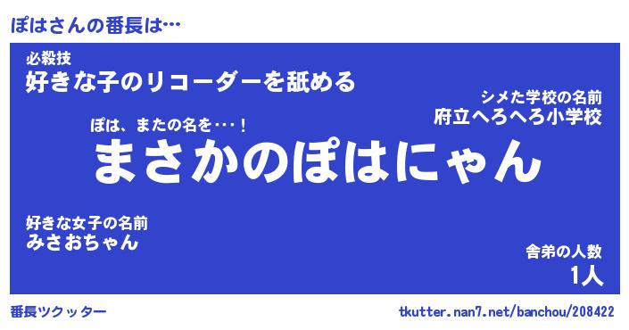 | 伝説のあだ名 | 『伝説の竜騎士ぽは』『最強の格闘家ぽは』 |