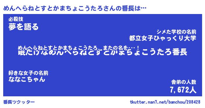 | 恥ずかしいあだ名 | 『プリティーめんへらねとすとかまちょこうたろ』 |