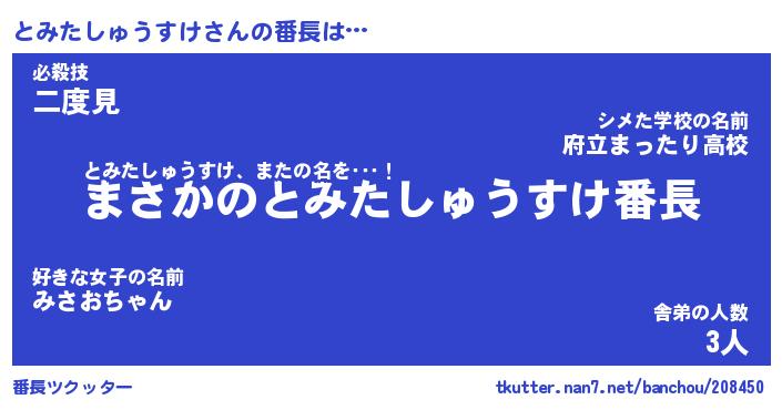 | ヒーロー風カッコイイあだ名 | 『スーパートミタシュウスケ』 |