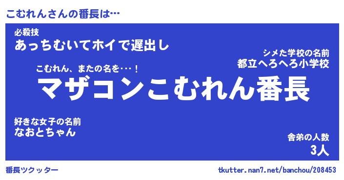| 意味不明あだ名 | 『ペロリンこむれん』『永久保存こむれん』 |