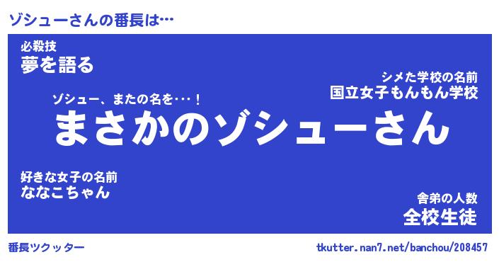 | 男性向けラノベタイトル風あだ名 | 『ゾシューの憂鬱』 |