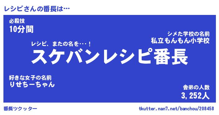 | 意味不明あだ名 | 『ペロリンレシピ』『レシピフォーエバー』 |