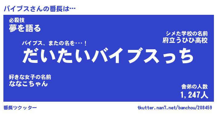 | 男性向けラノベタイトル風あだ名 | 『バイブスの憂鬱』 |