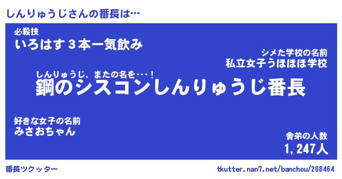 | 肩書あだ名 | 『しんりゅうじ御曹司』 |