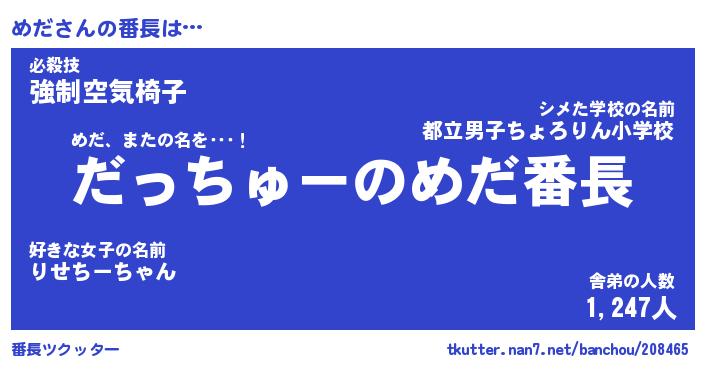 | 肩書あだ名 | 『めだ御曹司』『めだ国家主席』 |