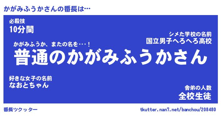 | 肩書あだ名 | 『かがみふうか店長』『かがみふうか担任』 |