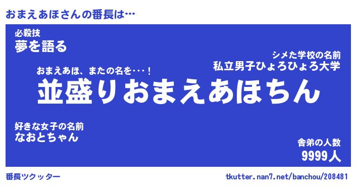 | ヒーロー風カッコイイあだ名 | 『スーパーオマエアホ』『銀牙騎士オマ』 |