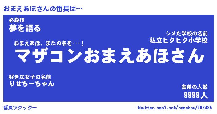 | ファンタジー風あだ名 | 『オマフェル』『エターナルオマエアホー』 |