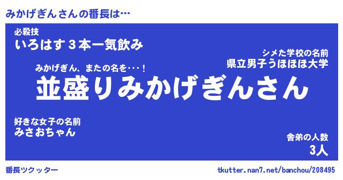 | 肩書あだ名 | 『みかげぎん社長』『みかげぎん大統領』 |