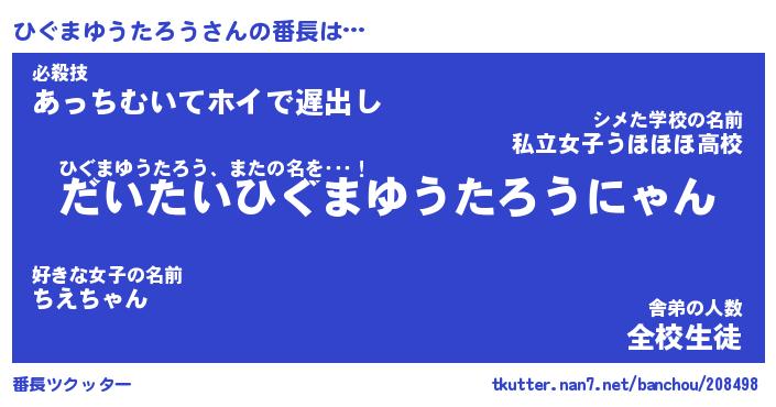 | 肩書あだ名 | 『ひぐまゆうたろう御曹司』 |