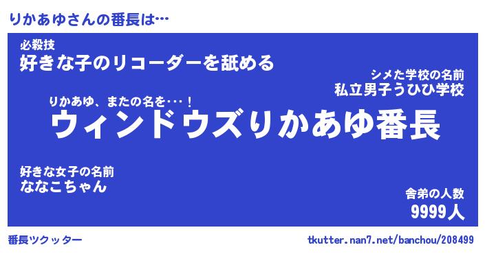 | 伝説のあだ名 | 『伝説のスナイパーりかあゆ』 |