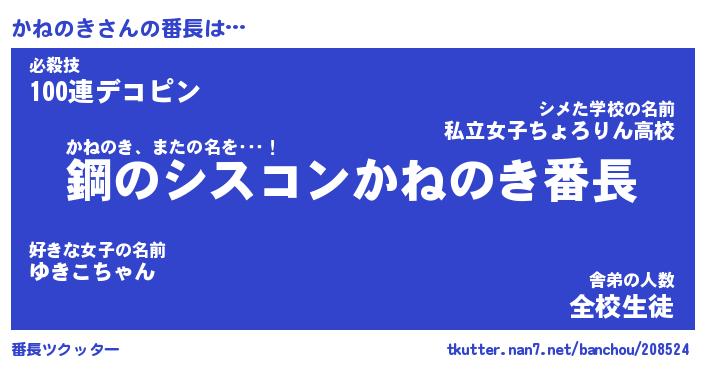 | 意味不明あだ名 | 『ペロリンかねのき』『永久保存かねのき』 |