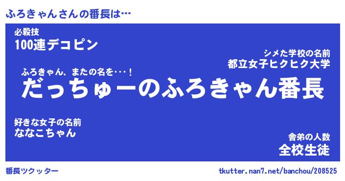 | ヘコむあだ名 | 『ふろにー』『なまこ酢』『ふろお』 |