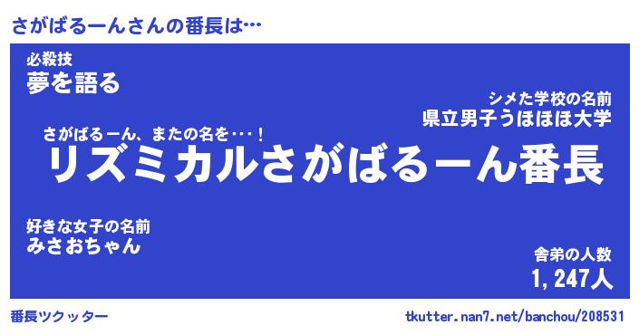 | ピコ太郎風あだ名 | 『サコ太郎』『ピサ三郎』『サガ四郎』 |