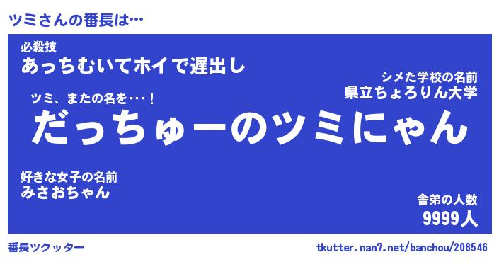 | 意味不明あだ名 | 『ペロリンツミ』『ツミフォーエバー』 |