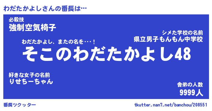 | ポケモン風あだ名 | 『ワダチュウ』『ワダタダネ』 |