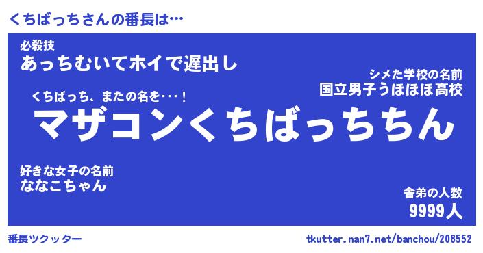 | ヒーロー風カッコイイあだ名 | 『スーパークチバッチ』『天弓騎士クチ』 |