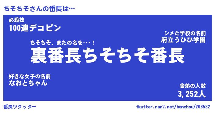 | ヘコむあだ名 | 『ちそにー』『つくし』『ちそっぺ』 |