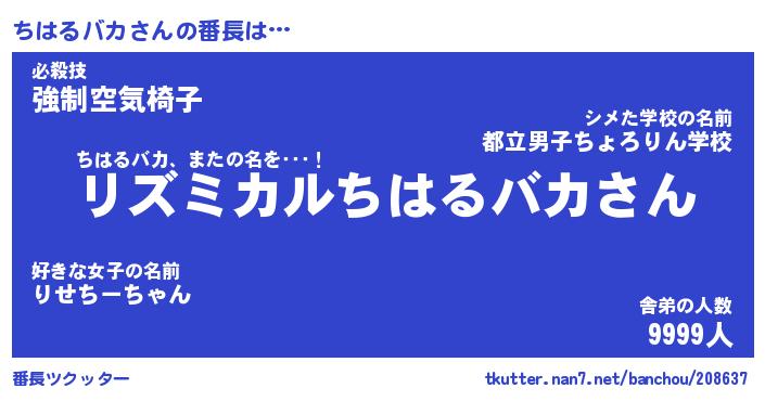 | ヒーロー風カッコイイあだ名 | 『スーパーチハルバカ』『銀牙騎士チハ』 |