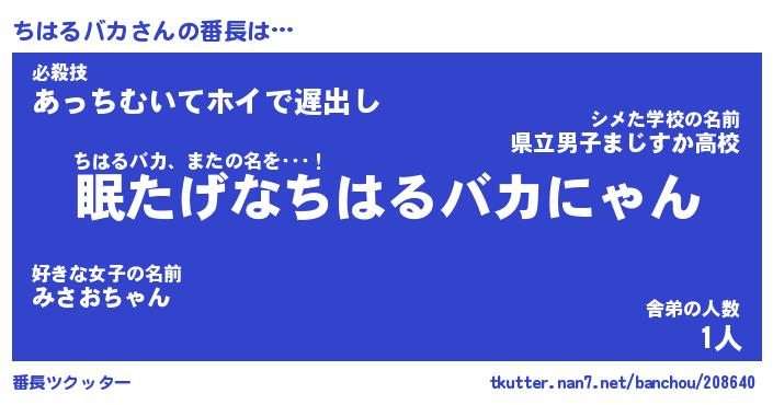 | ヒーロー風カッコイイあだ名 | 『スーパーチハルバカ』『幻影騎士チハ』 |