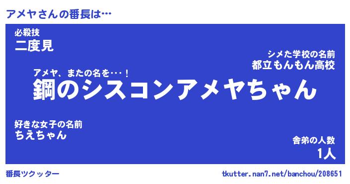 | ファンタジー風あだ名 | 『アメフェル』『エターナルアメヤー』 |