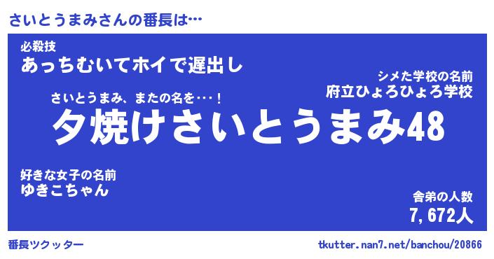 | 伝説のあだ名 | 『封印されしスナイパーさいとうまみ』 |