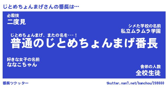 | ヒーロー風カッコイイあだ名 | 『スーパージトメチョンマゲ』 |