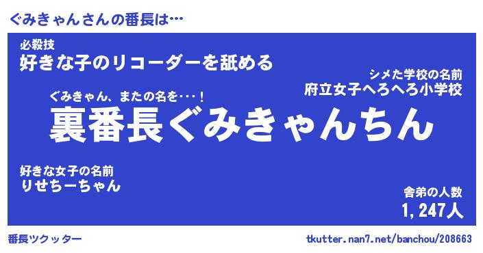 | ヒーロー風カッコイイあだ名 | 『スーパーグミキャン』『炎刃騎士グミ』 |