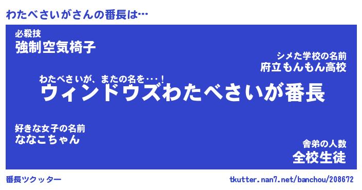 | ピコ太郎風あだ名 | 『ワコ六郎』『ピワ二郎』『ワタ次郎』 |