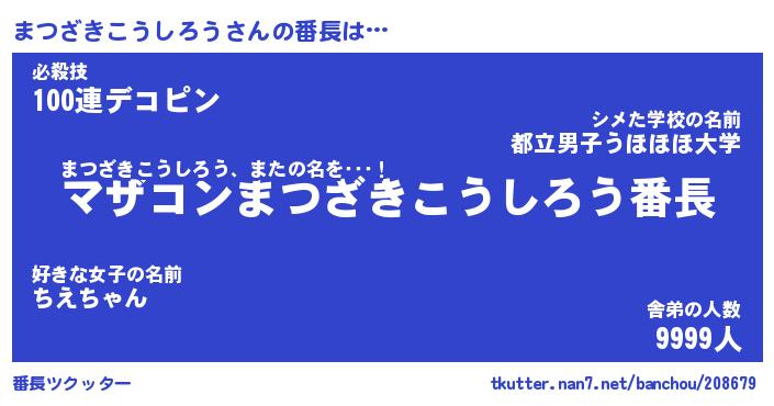 | ピコ太郎風あだ名 | 『マコ三郎』『ピマ二郎』『マツ二郎』 |