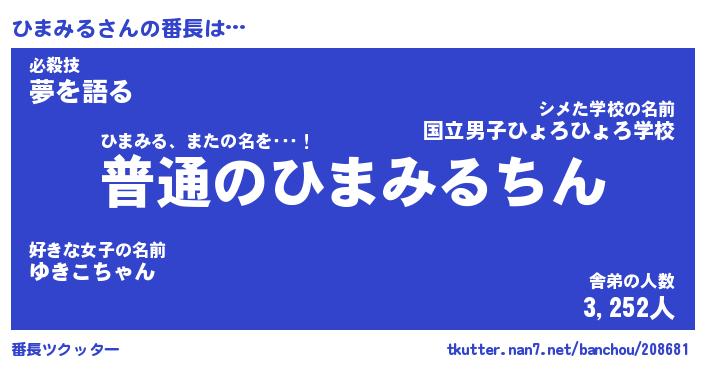 | ファンタジー風あだ名 | 『ヒマフェル』『エターナルヒマミルー』 |