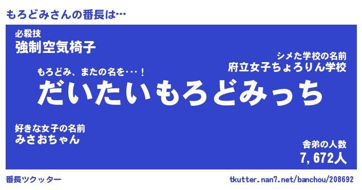 | ヒーロー風カッコイイあだ名 | 『スーパーモロドミ』『天弓騎士モロ』 |