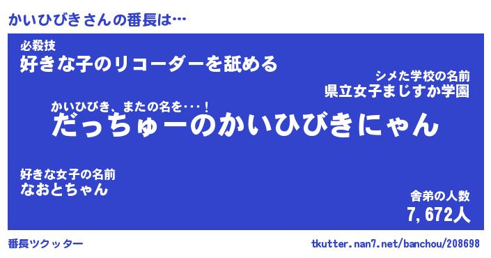 | 肩書あだ名 | 『かいひびき社長』『かいひびき国家主席』 |