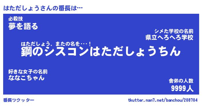 | ヘコむあだ名 | 『はたにー』『豆乳』『はたを』 |