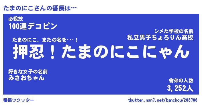 | ヒーロー風カッコイイあだ名 | 『スーパータマノニコ』『炎刃騎士タマ』 |