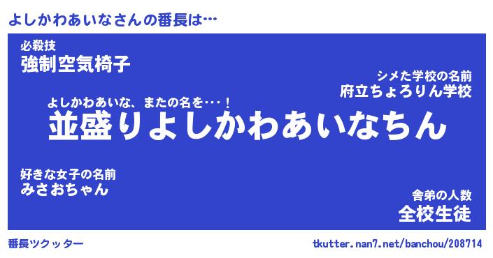 | 欧米人風あだ名 | 『マイケルよしかわあいな』 |