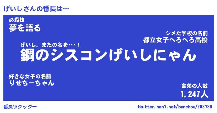| ヘコむあだ名 | 『げいもー』『豆乳』『げいっぺ』 |