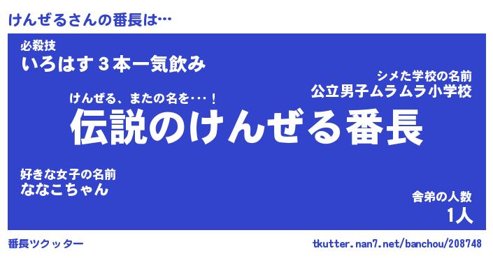 | 意味不明あだ名 | 『ペロリンけんぜる』『永久保存けんぜる』 |