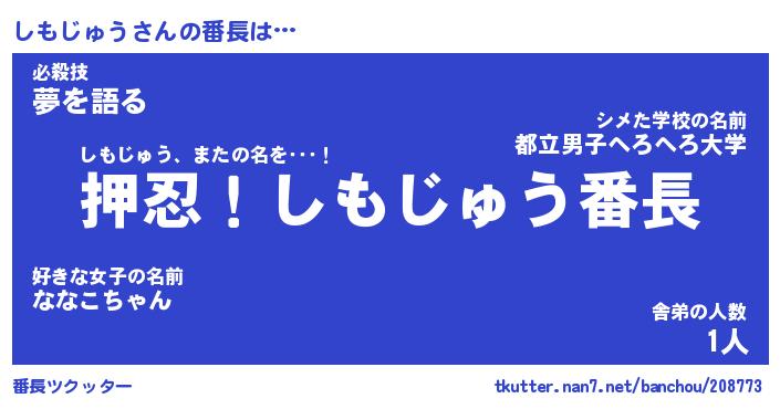 | ヘコむあだ名 | 『しもにー』『豆乳』『しもお』 |