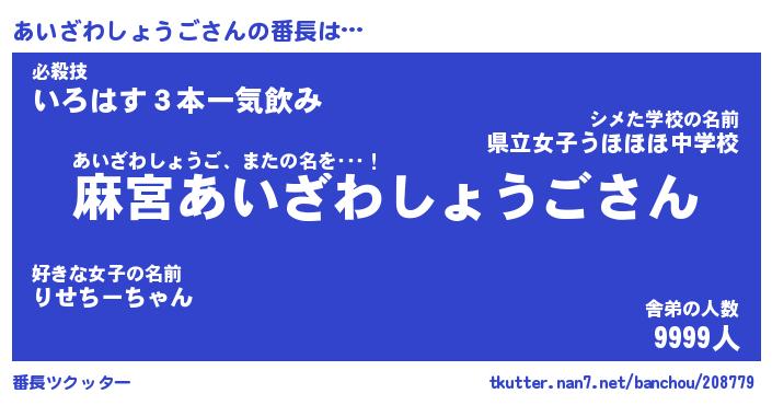 | ヘコむあだ名 | 『あいにゅー』『なまこ酢』『あいを』 |