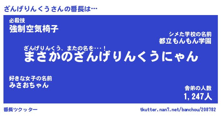 | ポケモン風あだ名 | 『ザンチュウ』『ザンゲダネ』 |