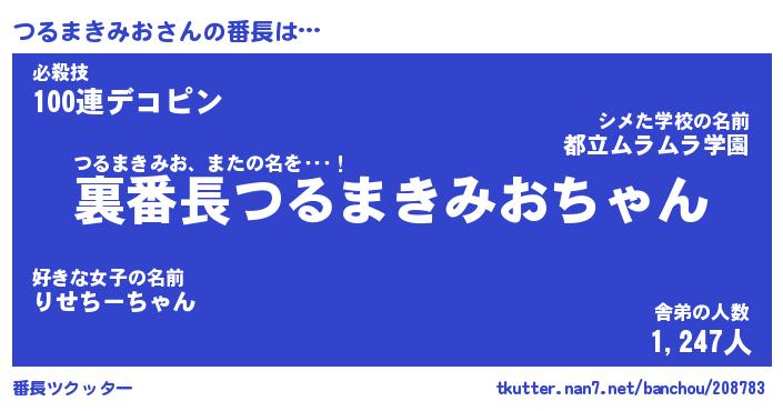 | ヒーロー風カッコイイあだ名 | 『スーパーツルマキミオ』『銀牙騎士ツル』 |