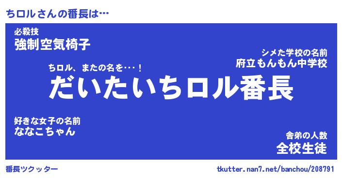 | 肩書あだ名 | 『ちロル店長』『ちロル大統領』 |