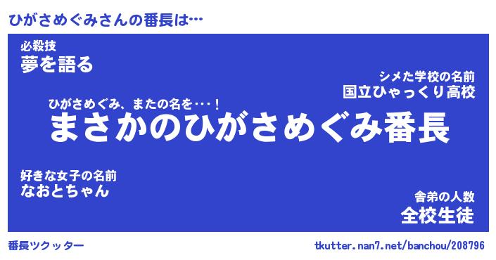 | ピコ太郎風あだ名 | 『ヒコ太郎』『ピヒ二郎』『ヒガ一郎』 |
