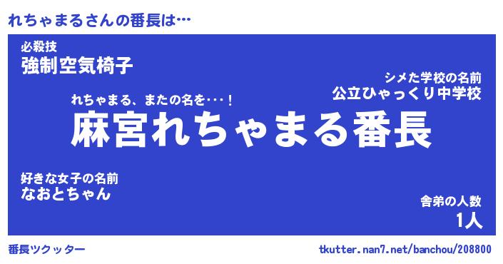 | 伝説のあだ名 | 『不死鳥の竜騎士れちゃまる』 |
